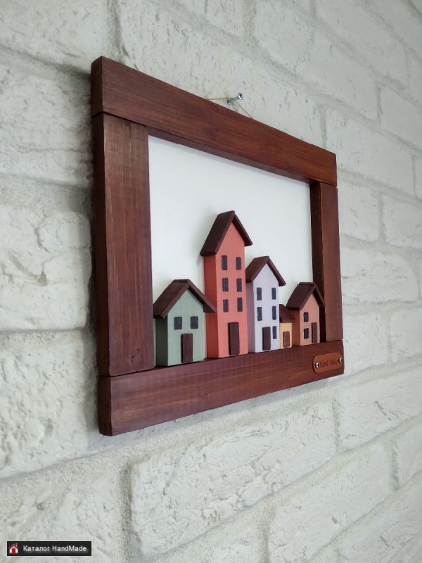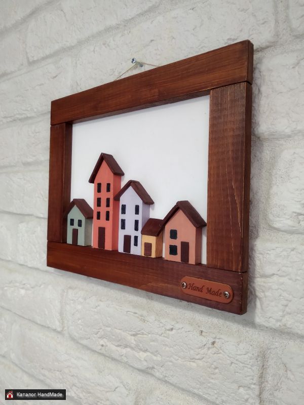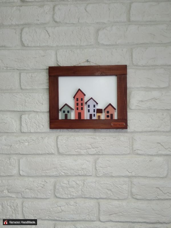 Объемное настенное декоративное интерьерное панно "Таунхаус". Отлично подойдёт для домашнего интерьера, как подарок на любой случай. Материал - дерево, акриловые краски, лак. Размер 23,8х19,2х1,3 см. Доставка Европочта, Белпочта. Смотрите также другие мои объявления.