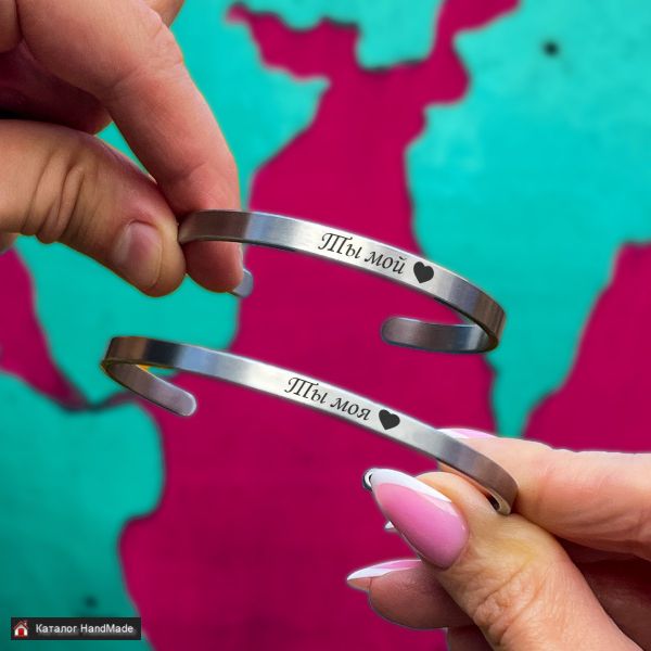 Парные браслеты отлично подходят для нанесения слов с признаниями в любви, мотивационных фраз, памятных дат, координат важных мест и других Ваших идей
