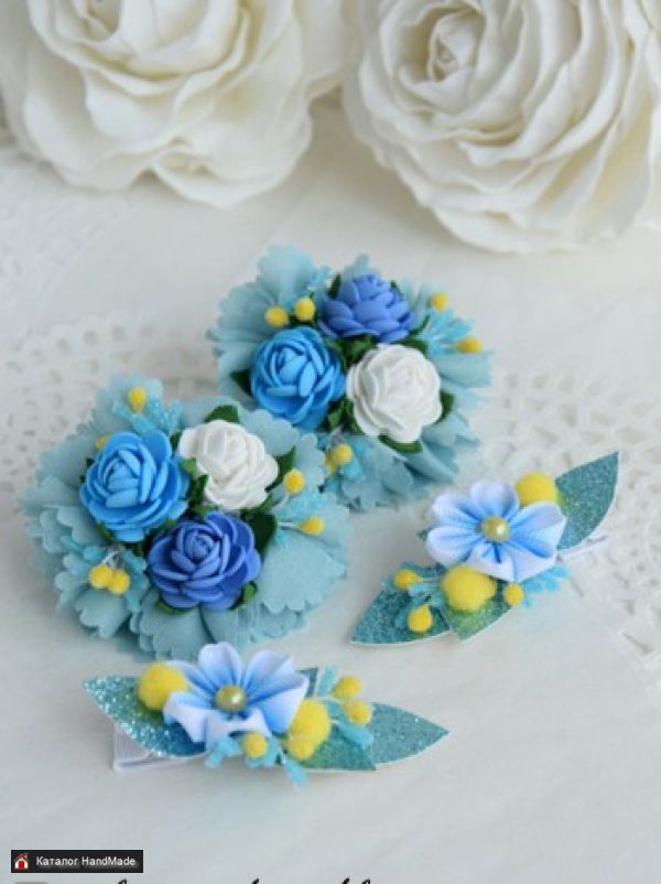 Парные резинки - розетки из шифоновой ленты с цветами из фоамирана ручной работы. 4 варианта цветов: желтый, голубой, сиреневый и розовый. Возможно составить комплект с парными заколочками. Стоимость комплекта уточняйте.