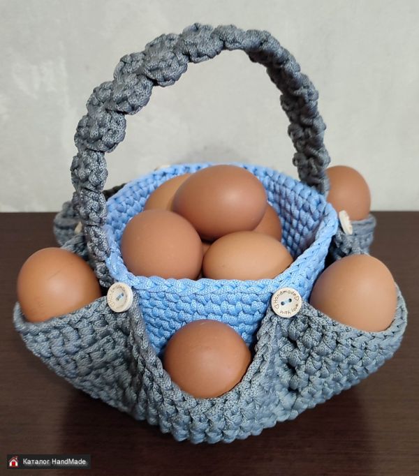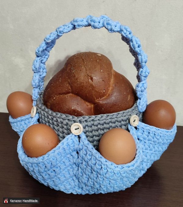 Очаровательная корзинка с кармашками под яйца, а в середину можно поставить кулич! С такой корзинкой будет удобно пойти на освещение яиц и кулича в Храм. Красиво она будет смотреться и на праздничном столе!