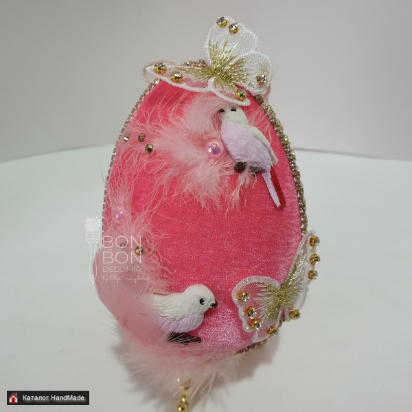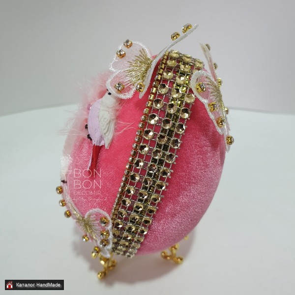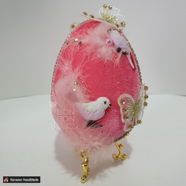 Диаметр Пасхального яйца - 10см., высота Пасхального яйца - 11см. Подставка будет другого плана. Нежное Пасхальное яйцо с декором из птиц(лепнина) и бабочек со стразами. Также Пасхальное яйцо украшено перьями, полубусинами и стразами. Такое Пасхальное яйцо станет отличным подарком крестнице, племяннице на Светлую Пасху. Упаковано в крафт-коробку, доставка г. Минск бесплатно, доставка по РБ почтовыми услугами.