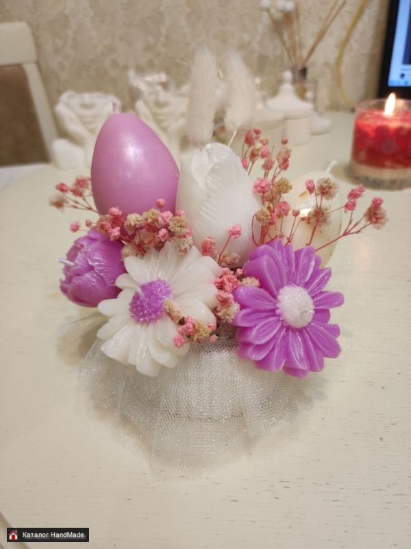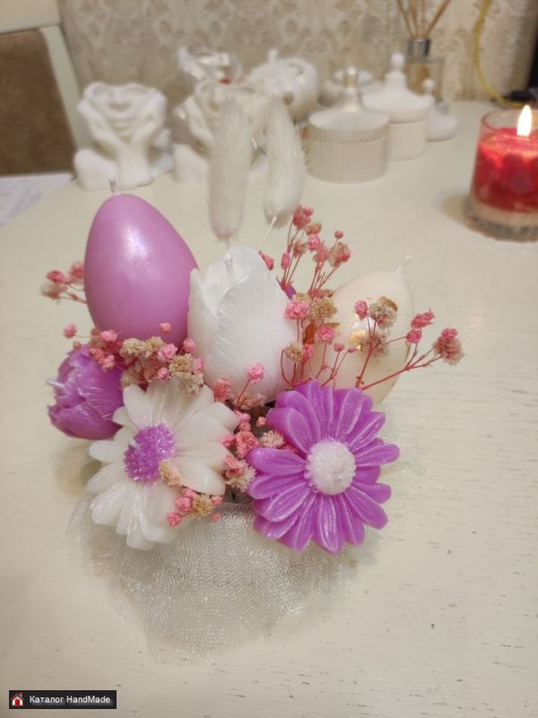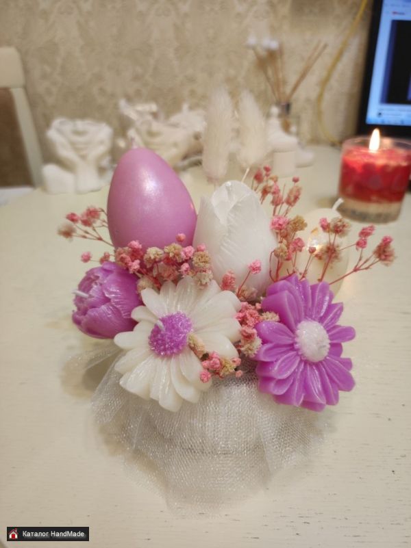 Пасхальный букет из свечей в гипсовом кашпо дополнит ваш праздничный декор