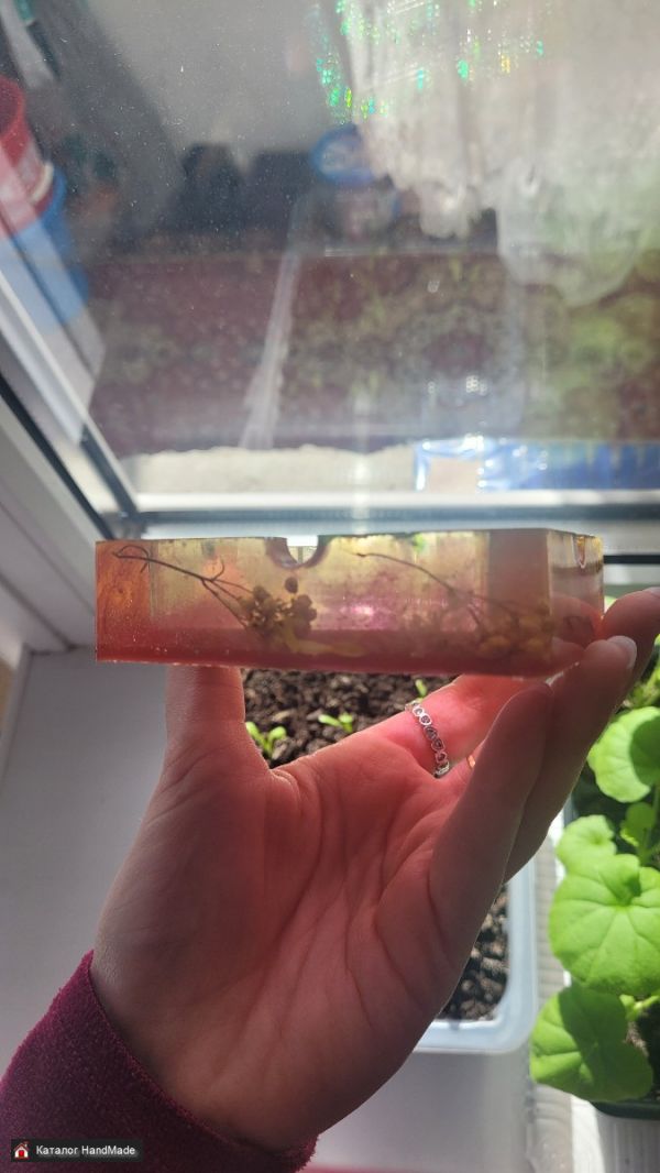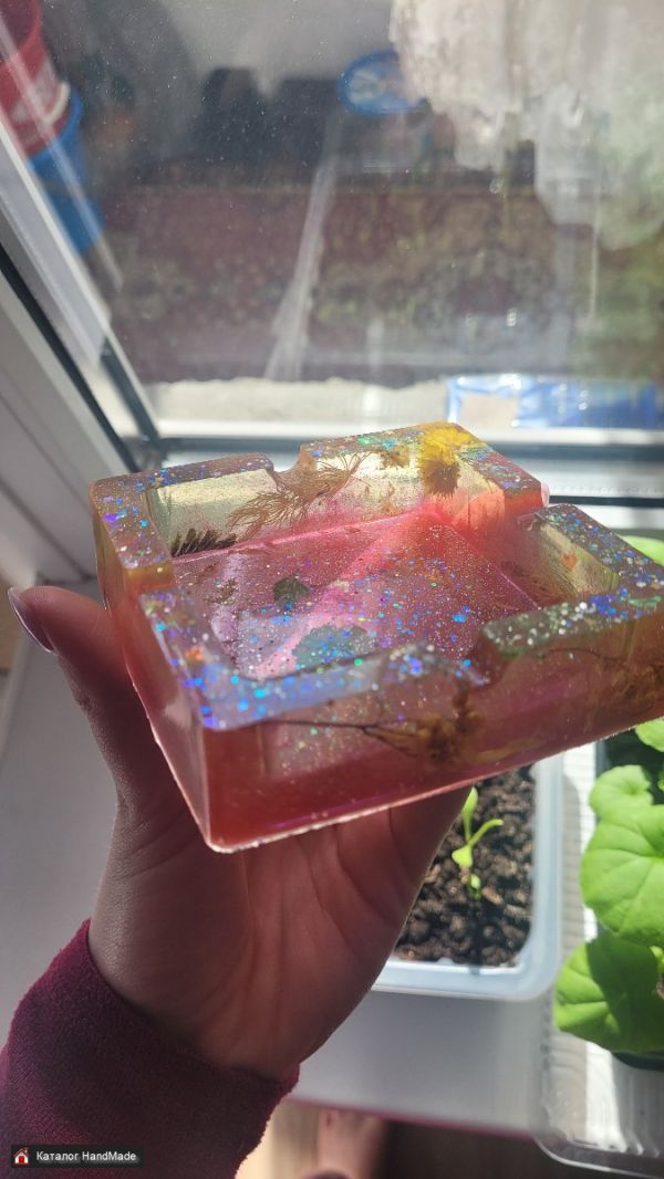 Пепельница из эпоксидной смолы с блёстками и натуральными сухоцветами. Можно использовать как подставку под украшения.