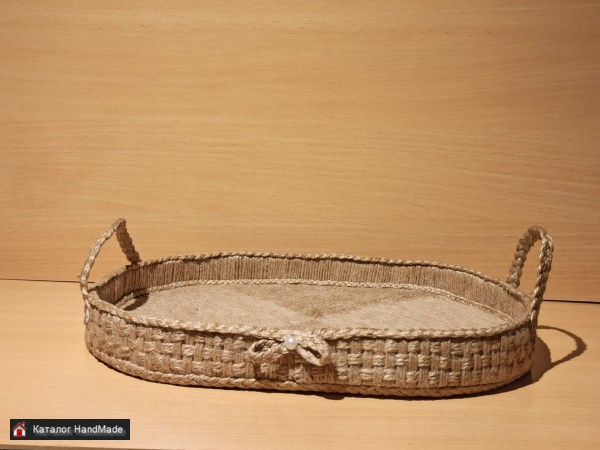 Поднос декоративный. Джутовая нить. Ручная работа