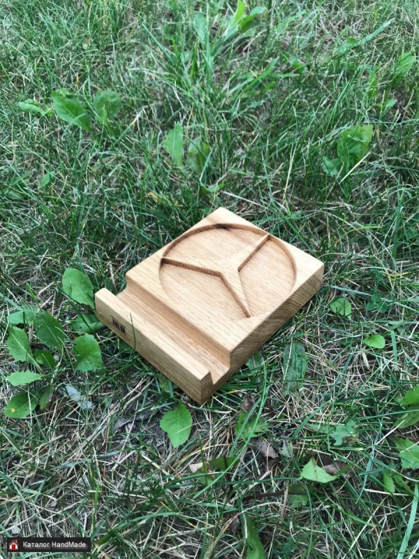 Подставка для смартфона Mercedes Benz, основа дуб. Отличный подарок для коллег, близких и родных людей. Размеры: Д - 13 см, Ш - 10 см, В - 2,5 см. Изготовим под заказ с любым логотипом!