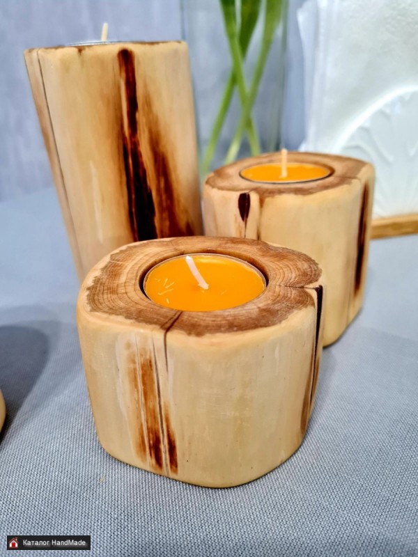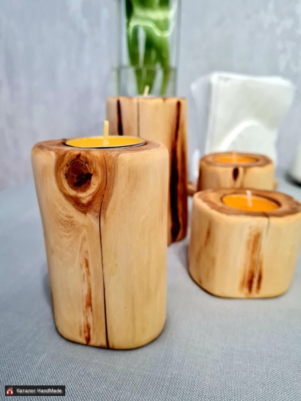 Подсвечники из спила можжевелового дерева. Разных размеров. Покрыты маслом. Очень вкусно пахнут при горении свечи.