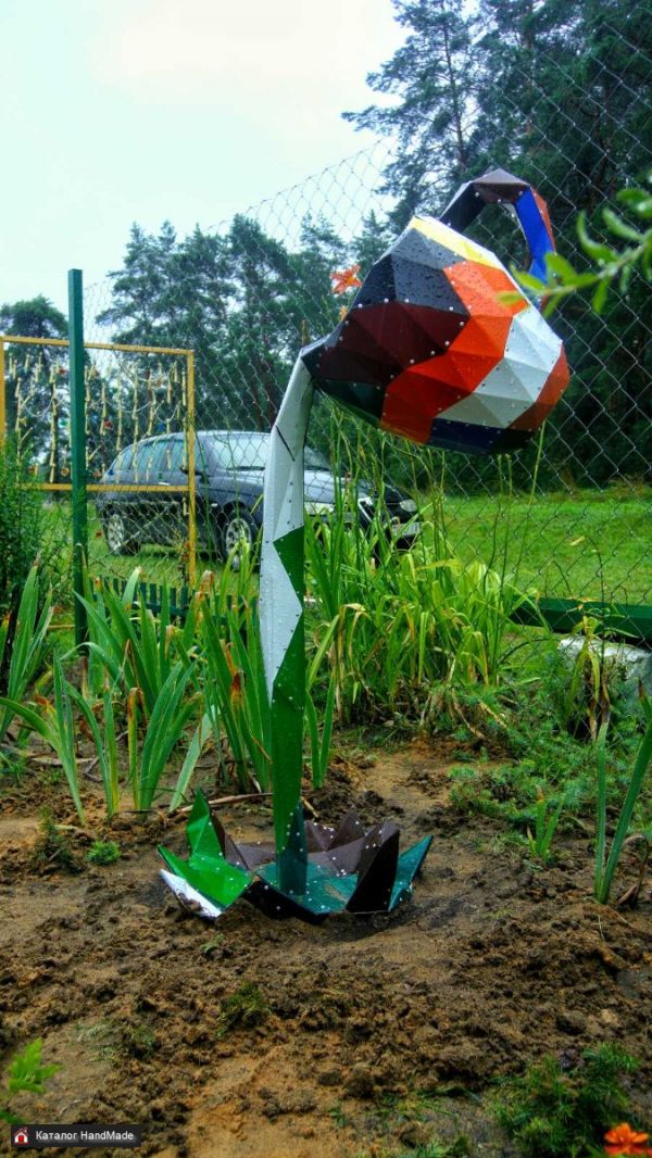 Высота 1.2м. Уникальное изделие из металла с ярким и современным дизайном. Идеально подходит для украшения сада, клумбы или дома. Легко ухаживать — достаточно протереть или помыть. Цвета могут быть любыми. Добавьте яркости и оригинальности вашему пространству!