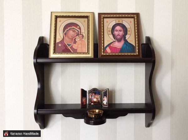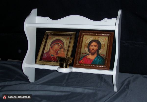 Полка настенная (собственное производство) изготовлена из МДФ. Размеры: длина 50 см, высота 36 см, глубина 13 см. Расстояние между полками 20 см. При желании длину можно увеличить до 70 см.