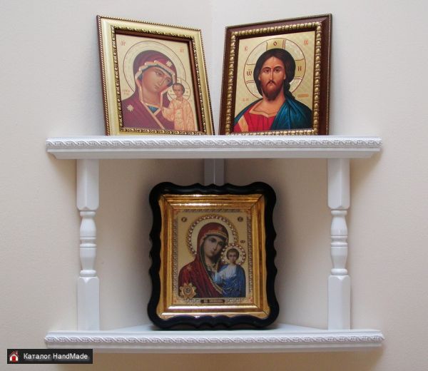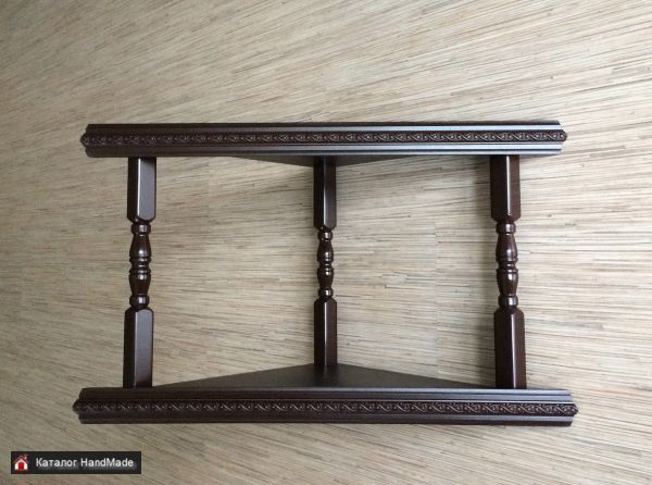 Полка настенная (собственное производство). Изготовлена из дерева и МДФ. Размеры: 37х37х53 см, высота 34 см, глубина 25 см. расстояние между полками 27 см. Цвет белый, коричневый.
