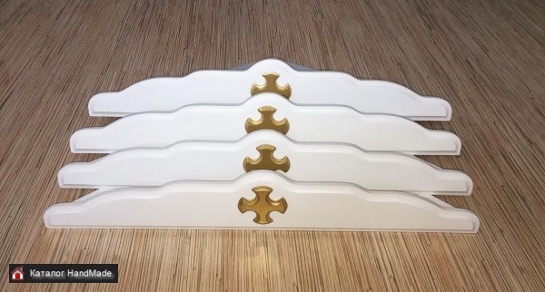 Полка настенная (ручная работа) изготовлена из МДФ, загрунтована и окрашена. Размеры: 31х31х44 см, глубина 22 см, высота 6 см. Указана стоимость изделия без крестика и позолоты. Позолота контура - 6 рублей. Крестик в цвет полки - 3 рубля, позолоченный - 4 руб. Цена неокрашенного изделия 10 рублей.