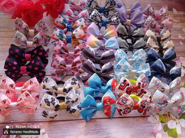 Бантики выполнены из репсовой ленты, основа бесшовная резинка, подойдут для первых хвостиков. Идут в наборе из 2-х шт, соответственно цена за набор