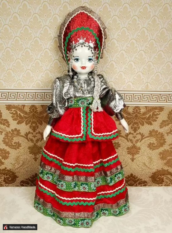 Коллекционная фарфоровая кукла с сертификатом автора. Размер куклы около 50 см. Одеты в бархатные платья, нарядно украшенные лентами и бусами. Традиционно наряжены в кокошник или шапку. Одежда и аксессуары выполнены с использованием качественных материалов и детализированы вручную. Прекрасная кукла для подарка, коллекционирования или декора При покупке от 10 шт скидка 10% От 20 шт 20% Все куклы разные