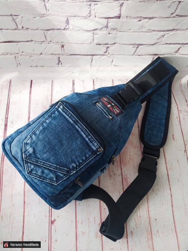 Рюкзак унисекс из джинсовой ткани №1. Размер: высота 30см, ширина 18см, глубина 6см. В рюкзаке два независимых отделения и внутренний карман на молнии. Лямка регулируется по длине.