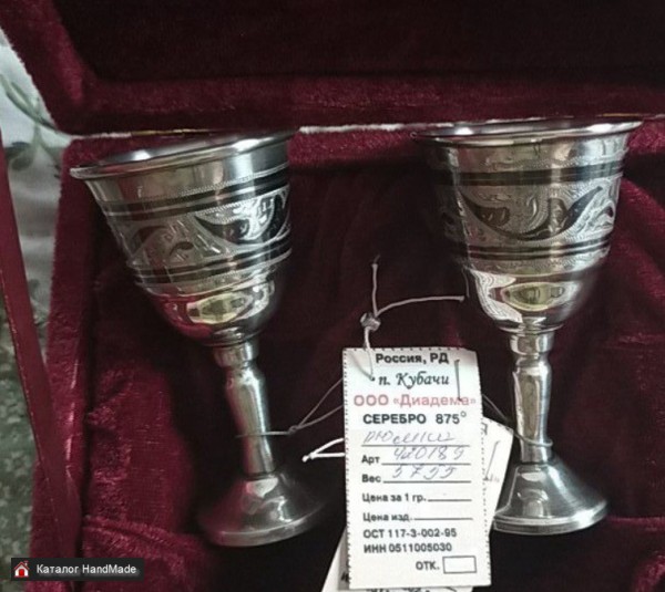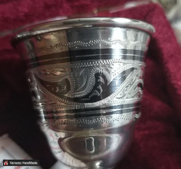 Серебряные рюмки от кубачинских мастеров, оригинальеый подарок от вас на любой праздник. Серебро имеет свойство очищать воду, насыщать налитое в него ионами серебра. Такой презент не стыдно преподнести руководителю, мужу, тестю... и т .д....так как он всегда будет в цене, и передастся по наследству как память о тебе. Вес изделий 57,5 грамм, серебро 875°. Продаются в бархатном подарочном футляре. цена со скидкой 35% . возможен обмен, или купить 1шт.