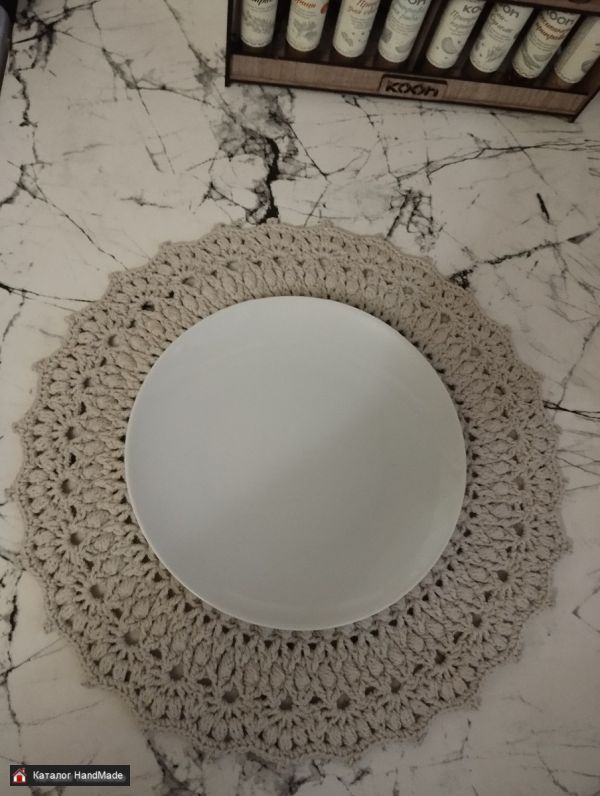 Салфетка сервировочная вязаная крючком. Размер в диаметре 34 см. Цвет лен. Возможно в другом цвете и в любом количестве.