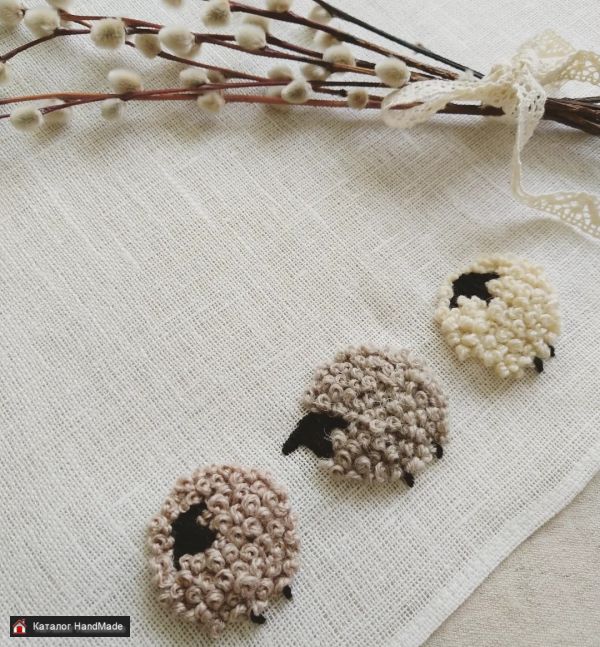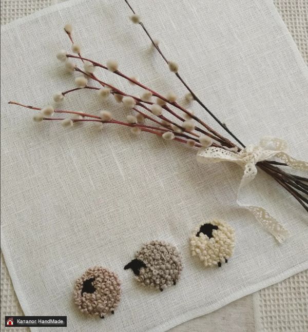 Салфетка выполнена на льне. Держит форму. Барашки выполнены шерстяными нитками. Создаётся объем. Размер 35 см * 35 см