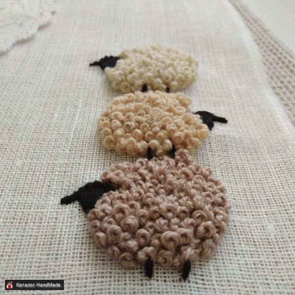 Салфетка выполнена на льне. Держит форму. Барашки выполнены шерстяными нитками. Создаётся объем. Размер салфетки 35 см* 35 см