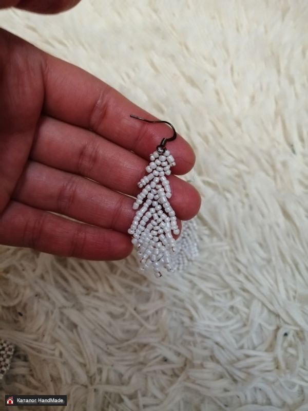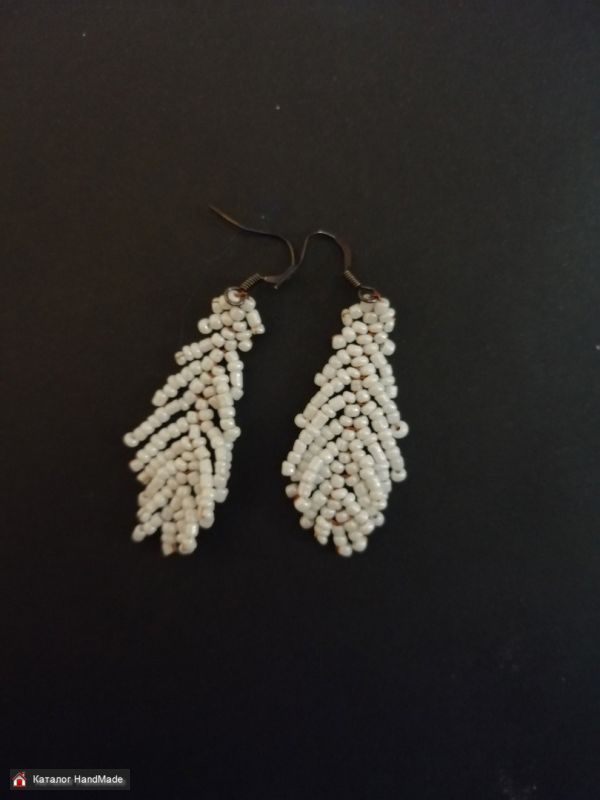 Серьги из белого бисера. Длина - 4 см. Могу сделать такие в другом цвете или с другим типом фурнитуры.