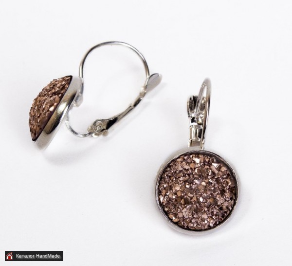 Стильные серьги с имитацией друзы из ювелирной смолы. Размер вставки: 1,2 см.