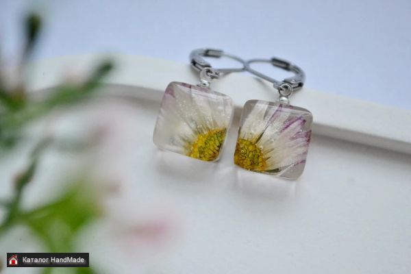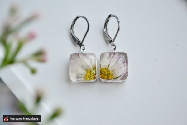 Небольшие аккуратные серьги квадратики с астрой станут отличным оригинальным подарком девушке, маме, сестре, подруге. Цветы, которые не завянут, и будут радовать не один год?