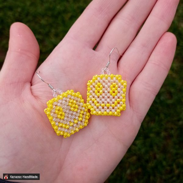 Яркие, забавные серьги смайлы на гепоаллергенной фурнитуре. Я могу изготовить их также и в других цветах. Сейчас в наличии такие.