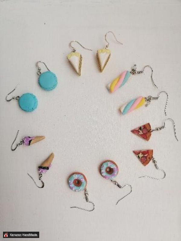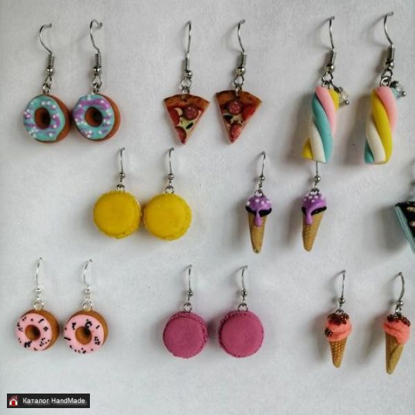 Милые сережки с разными вкуснаяшками. Полностью ручная лепка. Возможно изготовление комплектов с браслетами и подвесками. Швензы хорошего качества.