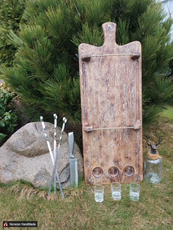 В комплект входят: набор из 6 шампуров (45см.) и 3 стильные стеклянные рюмки.