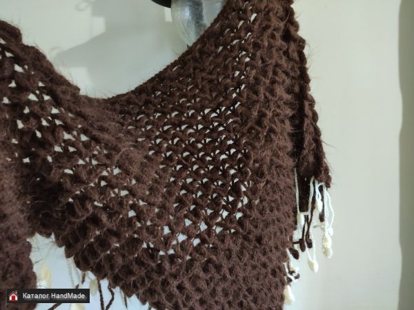 Шаль-бактус шоколадного цвета из мохера вязки "крокодилья кожа"