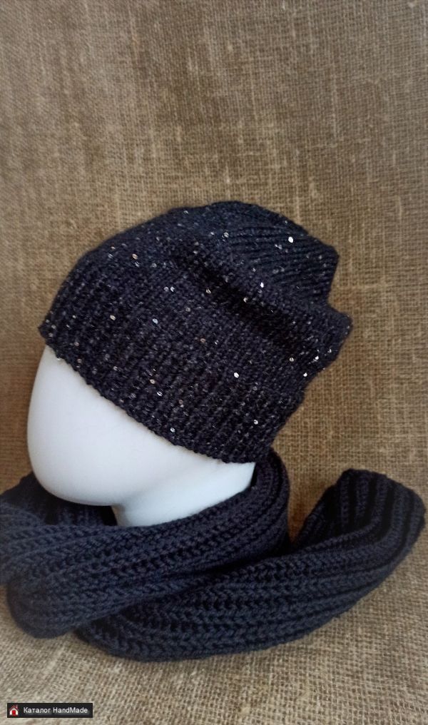 Шапка с пайетками, размер 54. Не колется, слегка пушистая за счёт добавления нити пуха норки.