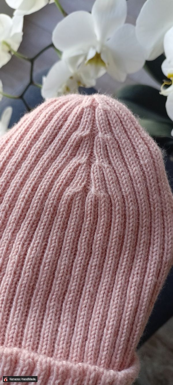 Шапочка бини демисезонная. Из мериносовой шерсти с кашемиром. Цвет персиковый. Подойдёт на обхват головы 53-56 см. Стирка при 40°С.