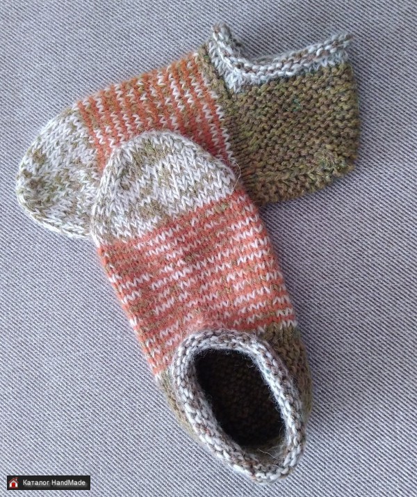 Очень теплые и удобные следочки-тапочки из шерстяной и полушерстяной пряжи. Усиленная пятка, плотная вязка. Будут к месту и дома, и на даче. Р-р 37-38