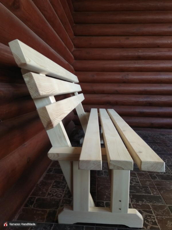 Скамейка со спинкой "Грудва" из массива сосны для дачи, бани, беседки, сада Скамейка со спинкой 1,2 м - 105 бел.руб. Скамейка со спинкой 1.5 м - 115 бел.руб. Скамейка со спинкой 1,7 м - 125 бел.руб. Скамейка со спинкой 2,0 м - 135 бел.руб. Габариты: ширина сидения -30-35 см, глубина - 43-45 см, высота сидения 42-44 см, высота с учетом спинки - 78-82 см. Спинка расположена под уклоном, поэтому сидеть на этой скамеечке очень комфортно. Материал: сосна технической сушки, строганая, шлифованная, толщиной 35-40 мм. Покрытие скамеечки не предусмотрено, что позволяет вам самим покрасить ее в нужный цвет согласно вашему интерьеру или в тон вашей беседки или бани. Нанесение покрытия ( пропитка, масло, лак, краска) по желанию заказчика за дополнительную плату. Изготовим любые размеры под заказ, возможно изготовление из других пород древесины (ольха, дуб) Скамейку можно приобрести как отдельно, так и в комплекте со столом, стульчиками, табуретками или креслом. Изготавливаем садовую мебель, мебель для бани, беседки, бани, хозблоки, садовые домики, садовые качели.