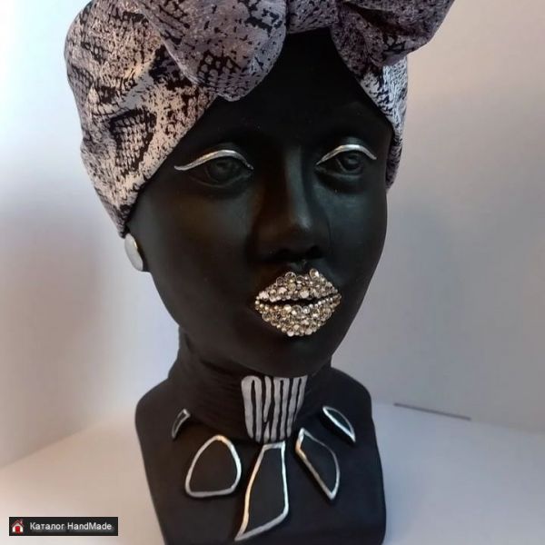 Скульптура-кашпо Африканка Высота 26см Глубина кашпо 10см. Может быть органайзером, конфетницей, ключницей или отдельным декором .высылаю почтой