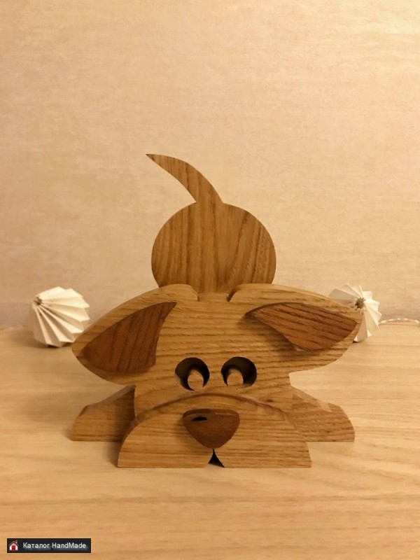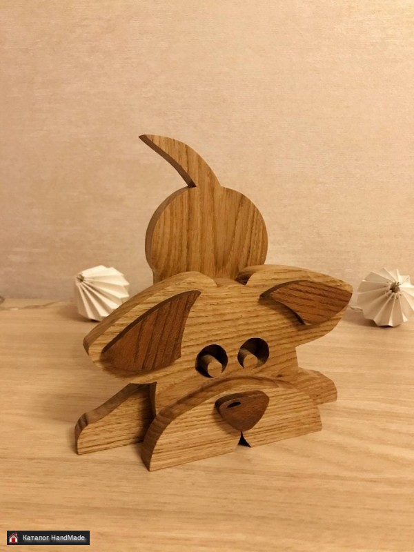 Собачка деревянная декоративная. Ручная работа. Материал: дуб. Покрытие: масло Borma. Размеры (в см.): 16 х 16 х 6.