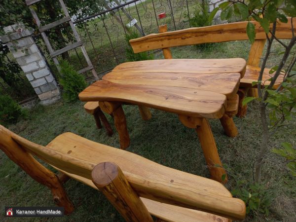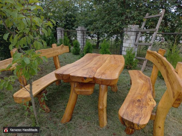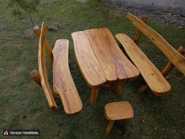 В комплекте вход . Стол и 2 лавочки. Табуретка в подарок. Комплект сделан с Дуба и Ясень .