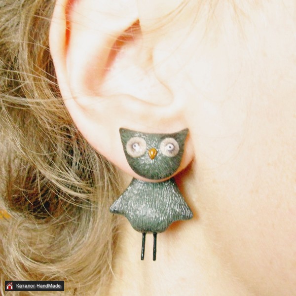 Ручная работа. Полимерная глина. Рост совы с лапками - 3,5см.)) Гвоздики из мед. сплава. Без торга! Без повтора! Можно в подарочной коробочке.