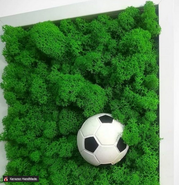 Материалы: стабилизированный мох, резиновый мяч, рамка МДФ, мох Размер: 25 на 25см 50 на 50 см
