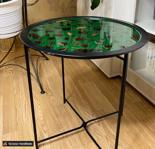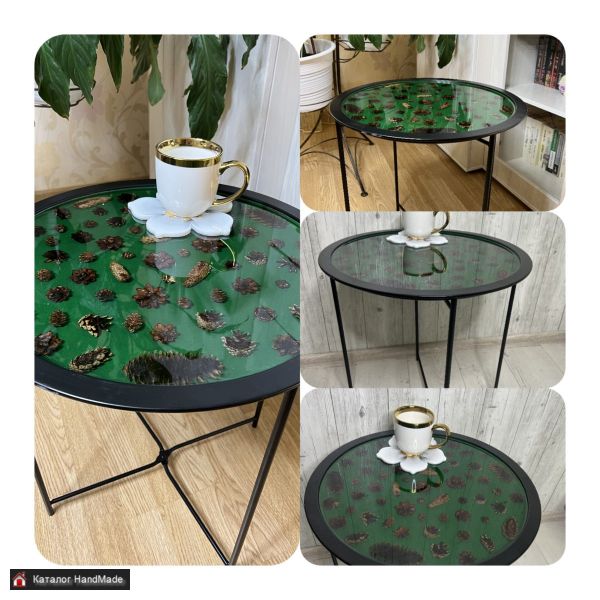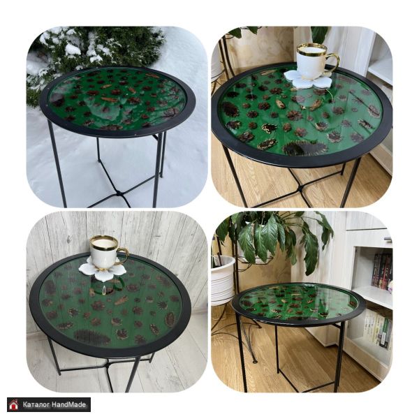 Многофункциональный складной стол-поднос с эпоксидной смолой и шишками, внутренний диаметр столешницы 43см