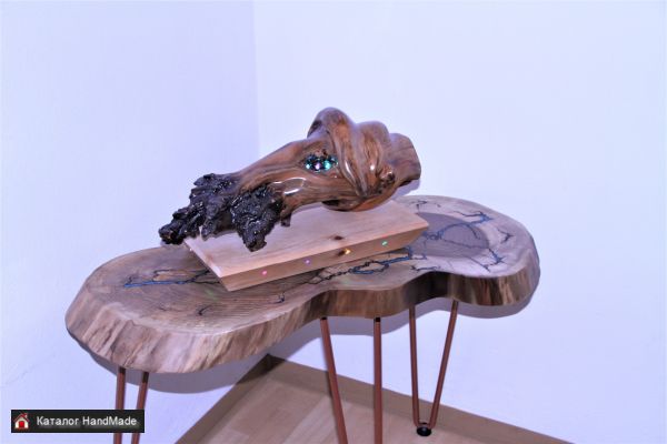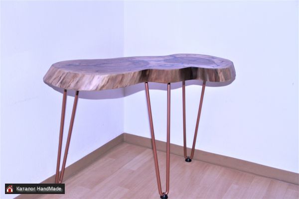 Столик ручной работы из ясеня и эпоксидной смолы. Ножки металлические с накладками для пола. Высота пр. 50см. Столешница