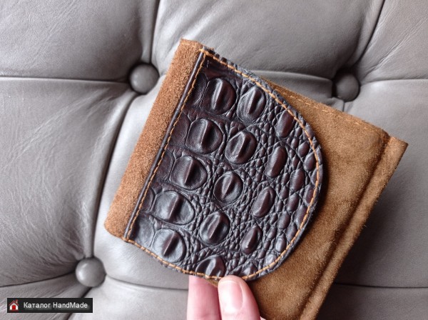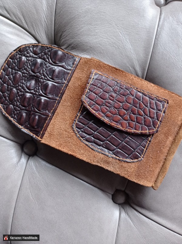 Изделие выполнено из натуральной кожи разной фактуры( основа замша,остальные элементы кожа с теснение под крокодила). Застежка металлические кнопки.