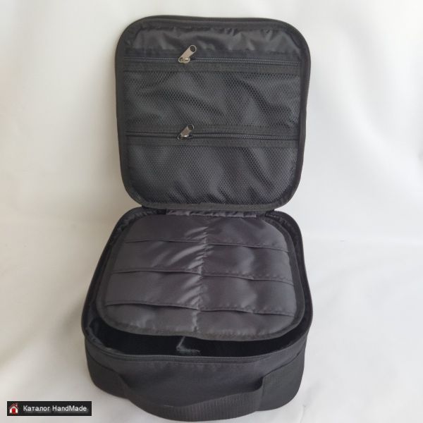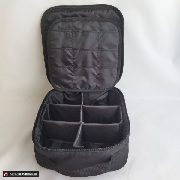 Текстильная сумка полужесткая с органайзером и карманами. Размер 28-28-12. Вмещает 6 катушек.