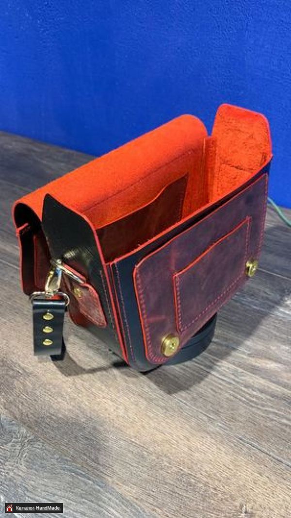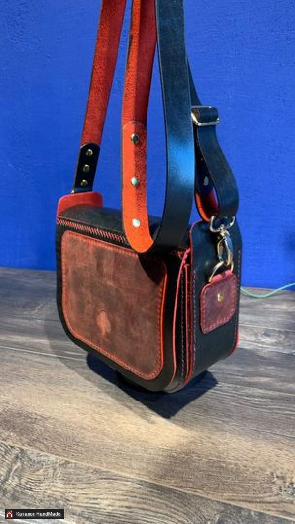 Сумка из натуральной кожи. Размер 210х150х80. Комбинированная кожа. Множество карманов для мелочей. Регулируемый ремень