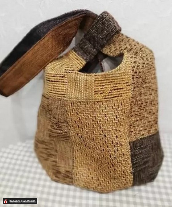 Сумка Японский мешок шитая ручной работы в технике печворк.Вместительная и удобная, ручка длинная просовывается в короткую, длинная ручка носится на плечо. Имеется подклад, ткань мебельная. Цвета осенние.