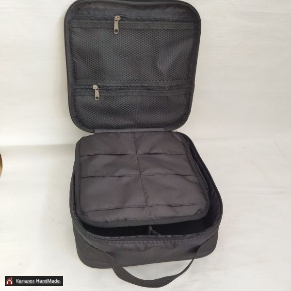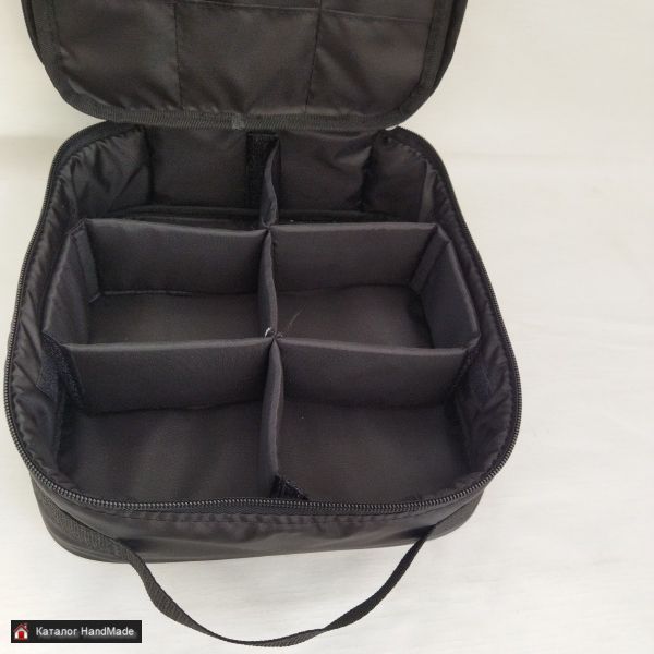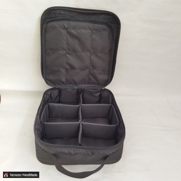 Содержит внутренний органайзер для мелочей, 6 ячеек для катушек, 2 сетчатых внутренних кармана. Размер сумки L 25см х 25см х 10см.