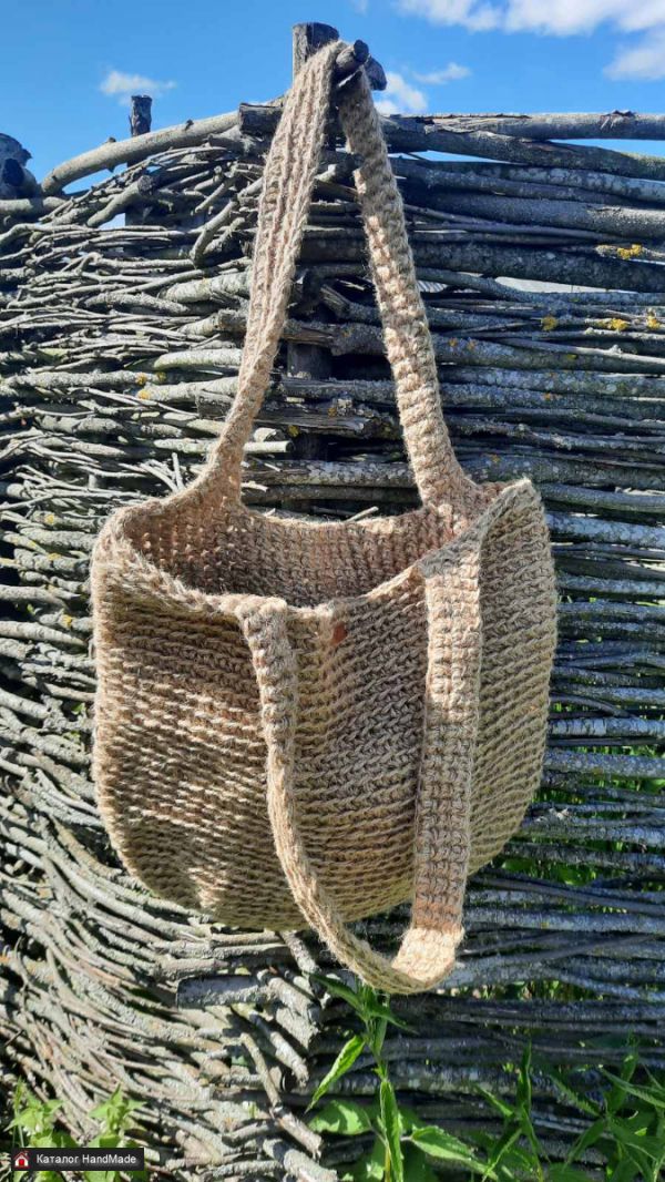 Сумка-шоппер, ручная работа, выполнена из 100% натурального волокна, джута. Сумка-шоппер актуальная во все времена. Это не только стильный аксессуар, но и практичная вещь. В ней достаточно места, чтобы разместить все необходимые повседневные вещи. А чтобы среди очень нужных вещей не затерялся ваш телефон или губная помада, внутри есть довольно вместительный кармашек. Сумку можно носить как не плече, так и в руках. Простота аксессуара сочетается с изяществом и дополнит любой образ независимо от выбранного стиля. Изделия из джута отличаются долговечностью, поэтому ручки выдержат достаточно большой вес. Размер сумки: высота - 33 см., ширина - 40 см. Длина ручки до плеча - 30 см. Размер кармана: высота - 14 см., длина 21 см. Можно стирать руками в теплой мыльной воде, затем придать форму и высушить.