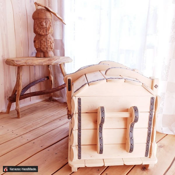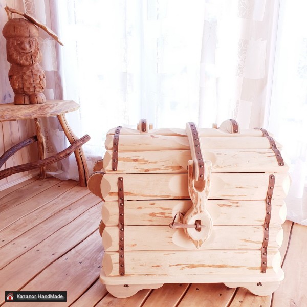 Сундук из массива ольхи декорированный кожей. Ручная работа. Длина: 94 см. Ширина: 60 см. Высота: 65 см. Объём: 145 л.