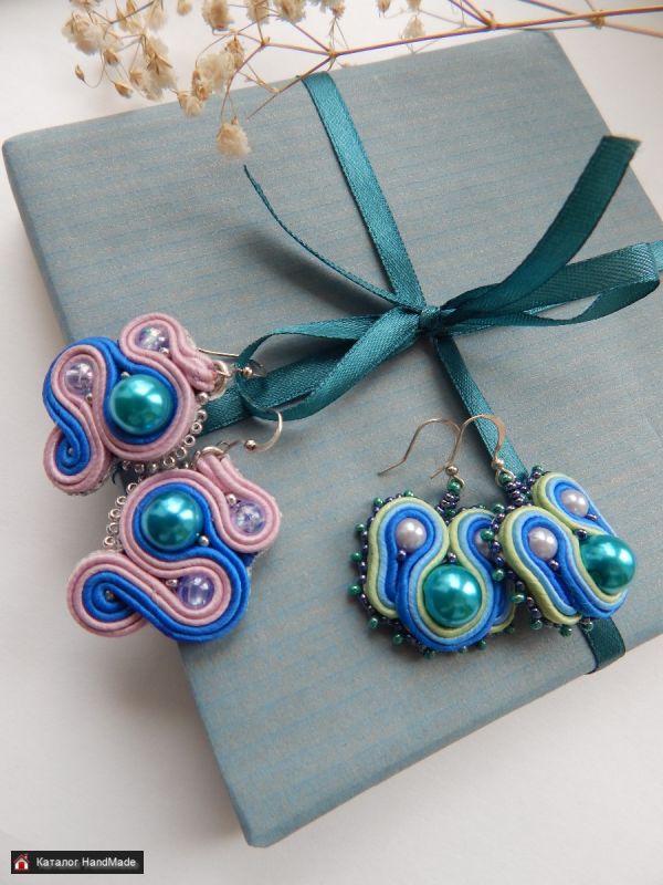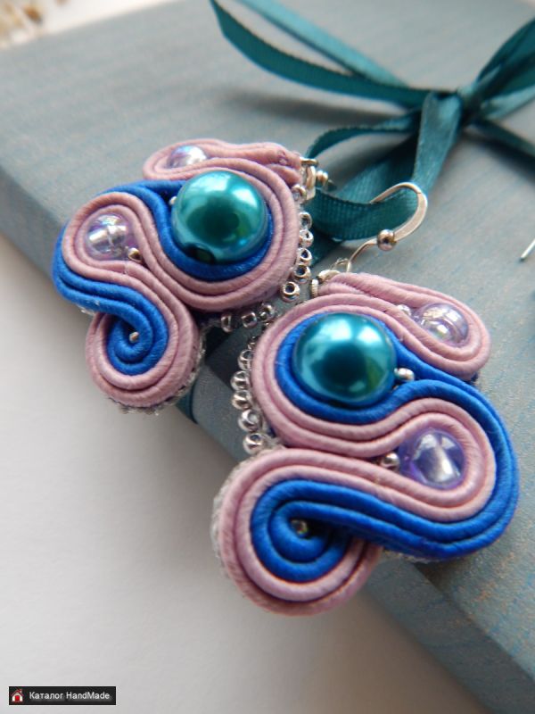 Интересные серьги в сутажной технике.