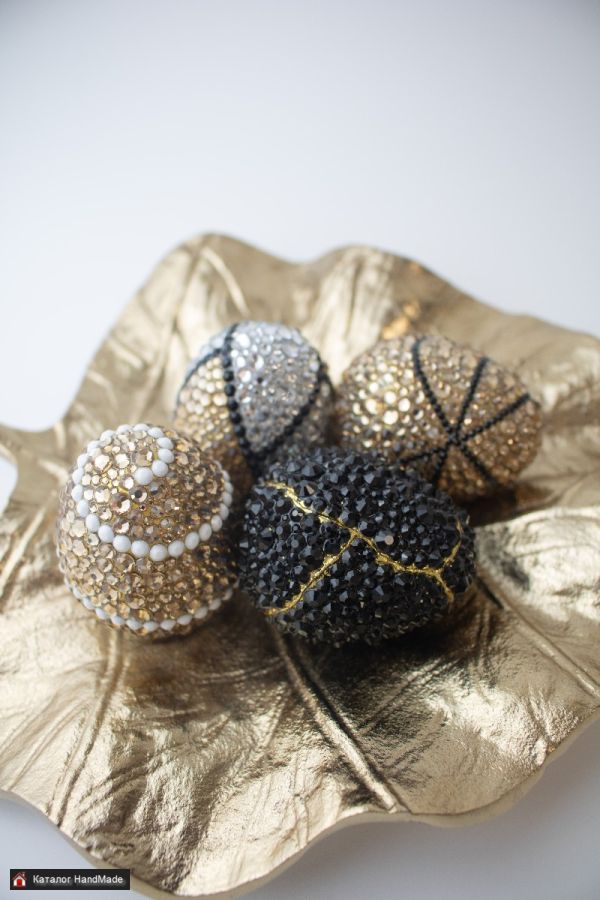 Аккуратная инкрустация, продуманный узор и гармоничное сочетание цветов делают каждое яйцо уникальным.