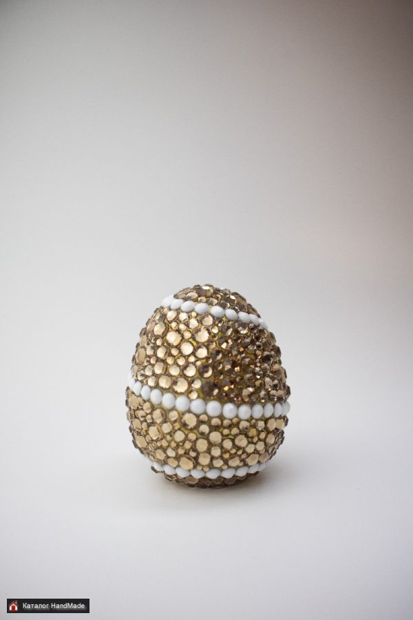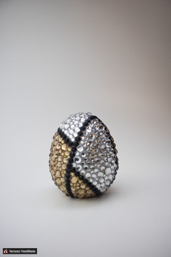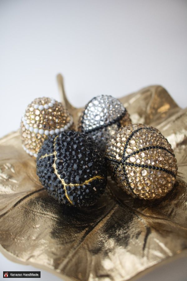 Основа яйца создаётся с помощью 3D-печати, что обеспечивает идеальную форму и точную геометрию. Каждое изделие затем вручную инкрустируется стразами мастером — с вниманием к каждой детали.