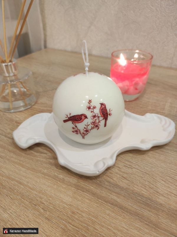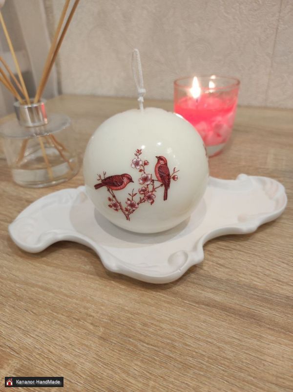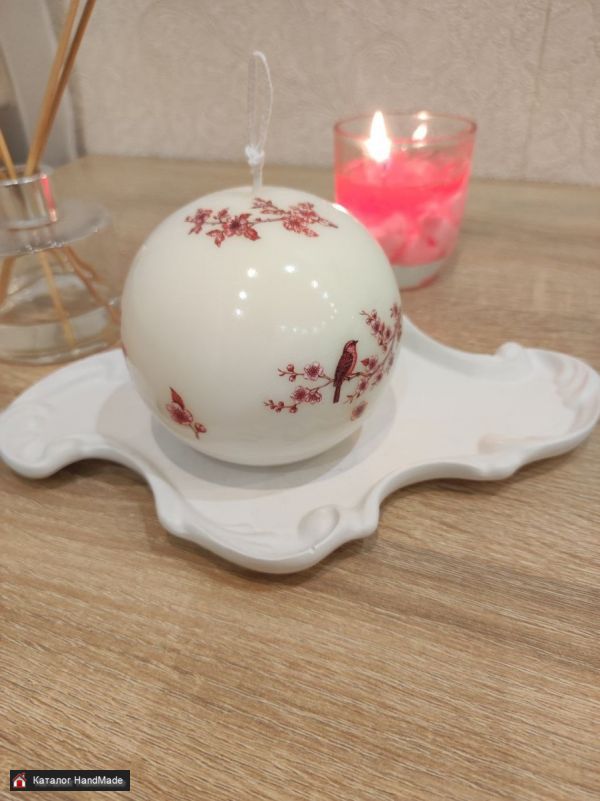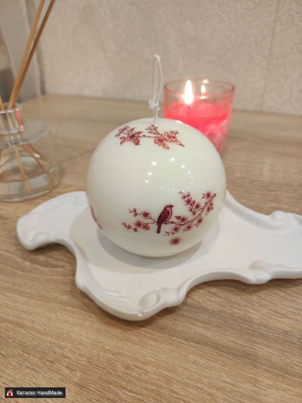 Свеча ручной работы "ШАР" с рисункам в китайском стиле